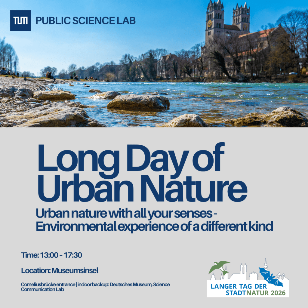 Join us to reflect together on what these new experiences can teach us about our own relationship with urban nature. The labs are open to all, including children! They are run by the Public Science Lab of the Technical University of Munich, featuring researchers Elis Jones, Desirée Hetzel, Sabina Leonelli, Anna-Maria Walter, and Anwesha Borthakur.